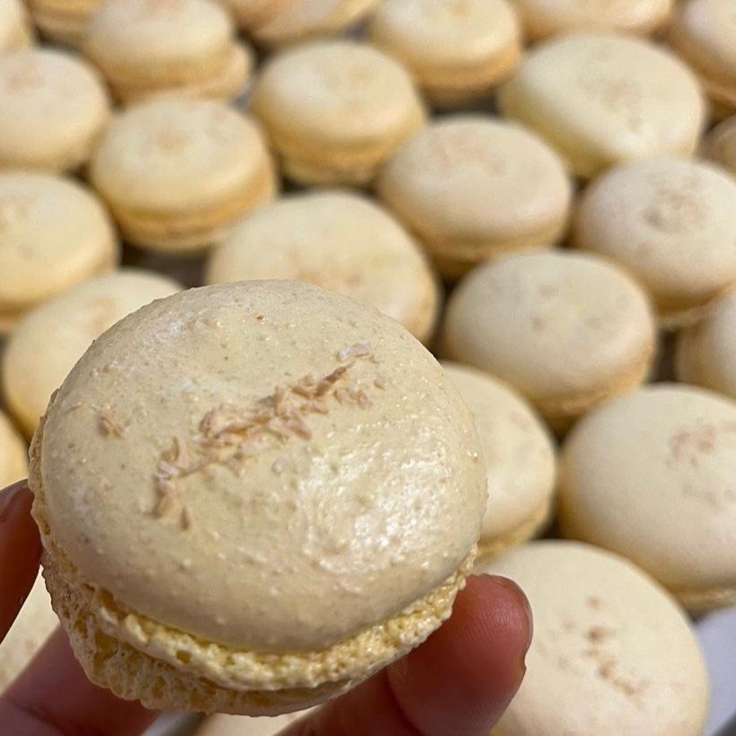 Ingredients: Almond Flour, eggs, sugar, icing sugar. Could have: Milk/white chocolate (soy lecitine), salt, honey, whipping cream, hazelnuts.